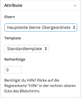 3. Damit man die Seite später dann über die Hauptseite auch findet, ordnen wir sie im "Attribute" Menü rechts einer Seite (der "Eltern"-Seite) unter.