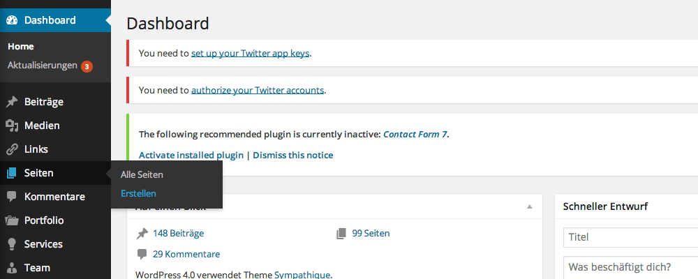 1. Bewegt euren Cursor unter der linken Seitenleiste auf "Seiten" und klickt auf "Erstellen"