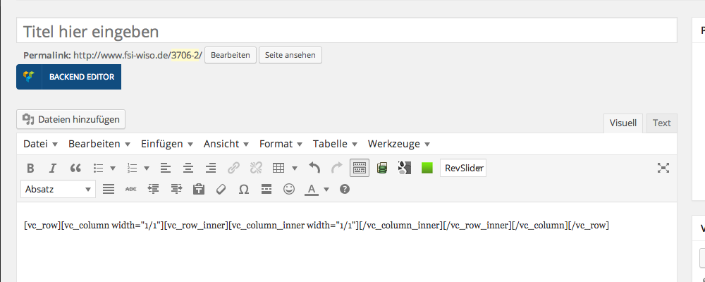 4. Um die Seite mit Inhalt zu füllen, klickt auf den blauen Button "BACKEND EDITOR" unter dem Titel.