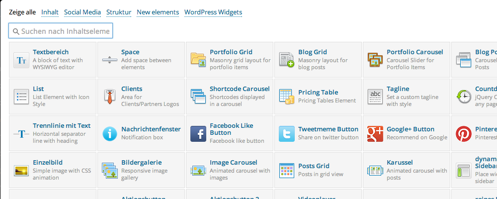 Es erscheint der Visual Composer, mit welchem ihr nach wie mit Bausteinen eure Seite gestalten könnt. Dies erspart uns (weitestgehend) das Hantieren mit HTML-Code.